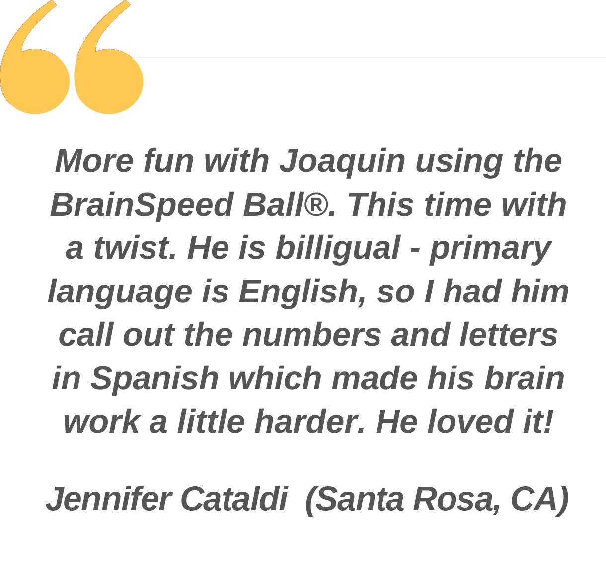Playing BrainSpeed Ball® for up to 5 minutes each day provides an easy, FUN, and stress-free way (without the computer screen) to coordinate the sensory systems. BrainSpeed Ball® games involve eye tracking and head movement in ways that are fun and effective while keeping the brain curious and engaged. When your brain processing is working correctly, you will see your symptoms start to disappear. In fact, in some cases, the results can be immediate. As one person that struggled with the long-term effects of a brain injury said, “It was like turning a light switch on after he played BrainSpeed Ball® for just a few minutes.”